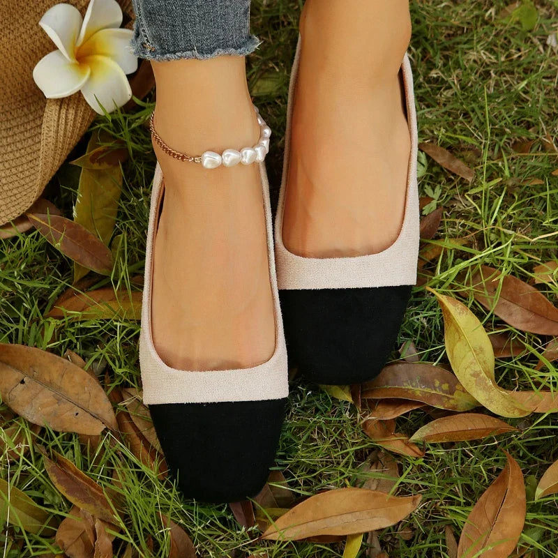 JO | Two Colored Square Toe Ballet Flats For Women